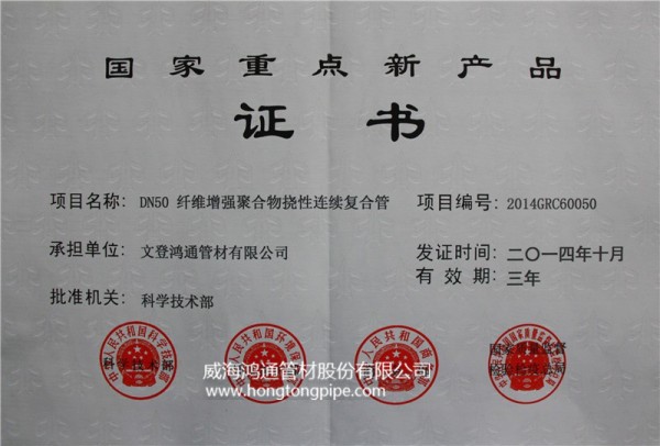 國家重點新產(chǎn)品(纖維增強撓性復合管